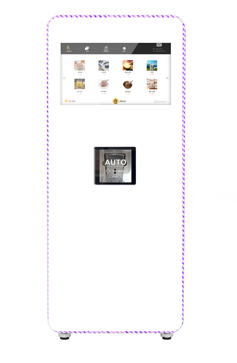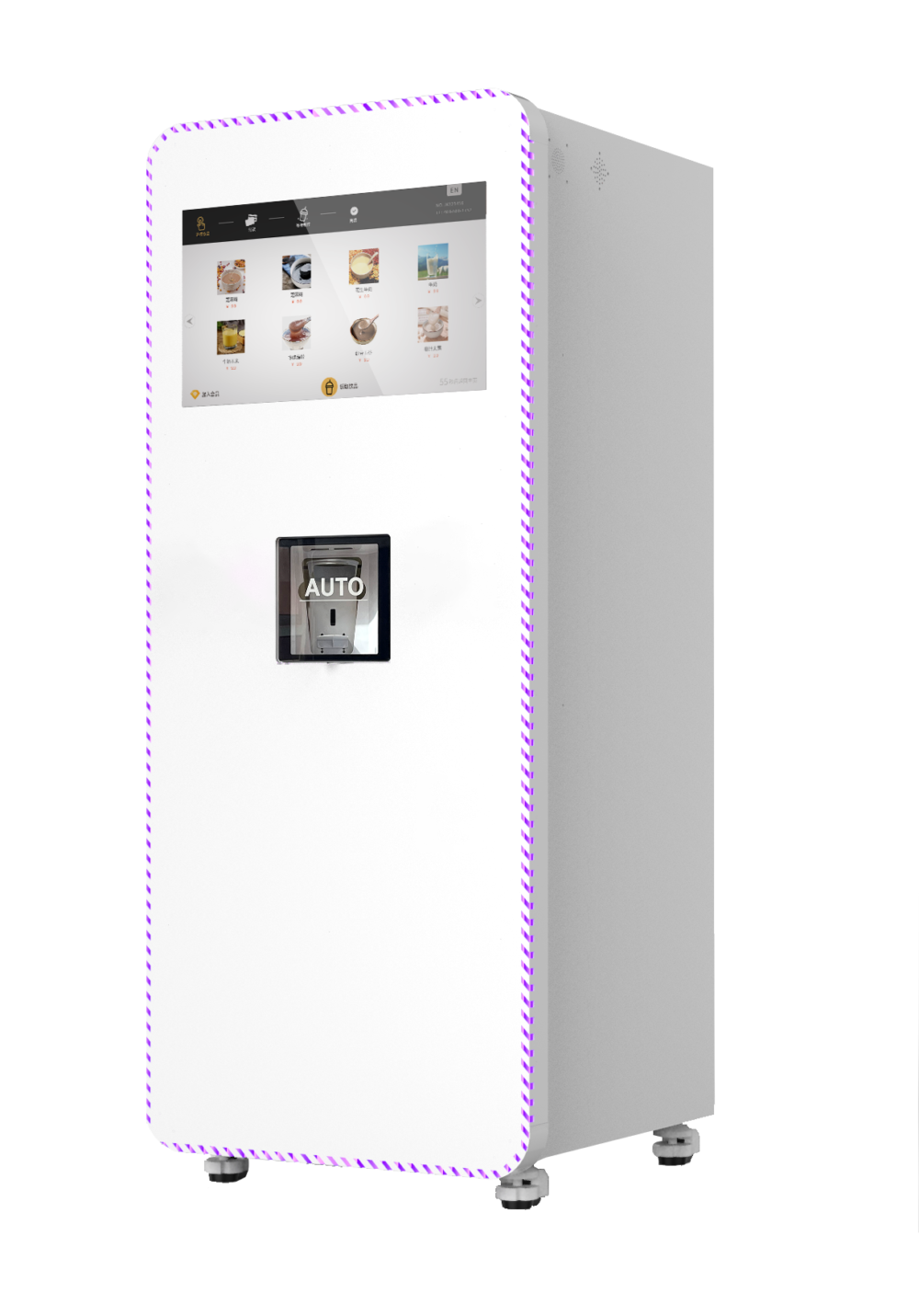 شاشة تعمل باللمس: 18.5 بوصة للإعلانات واختيار النكهات.