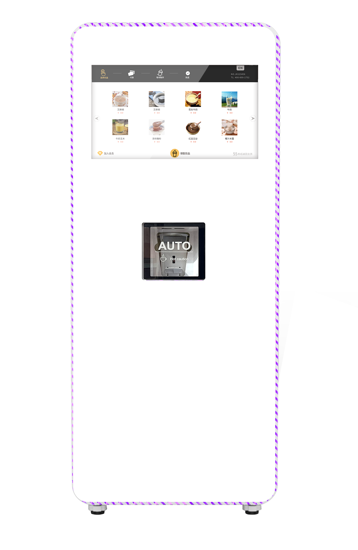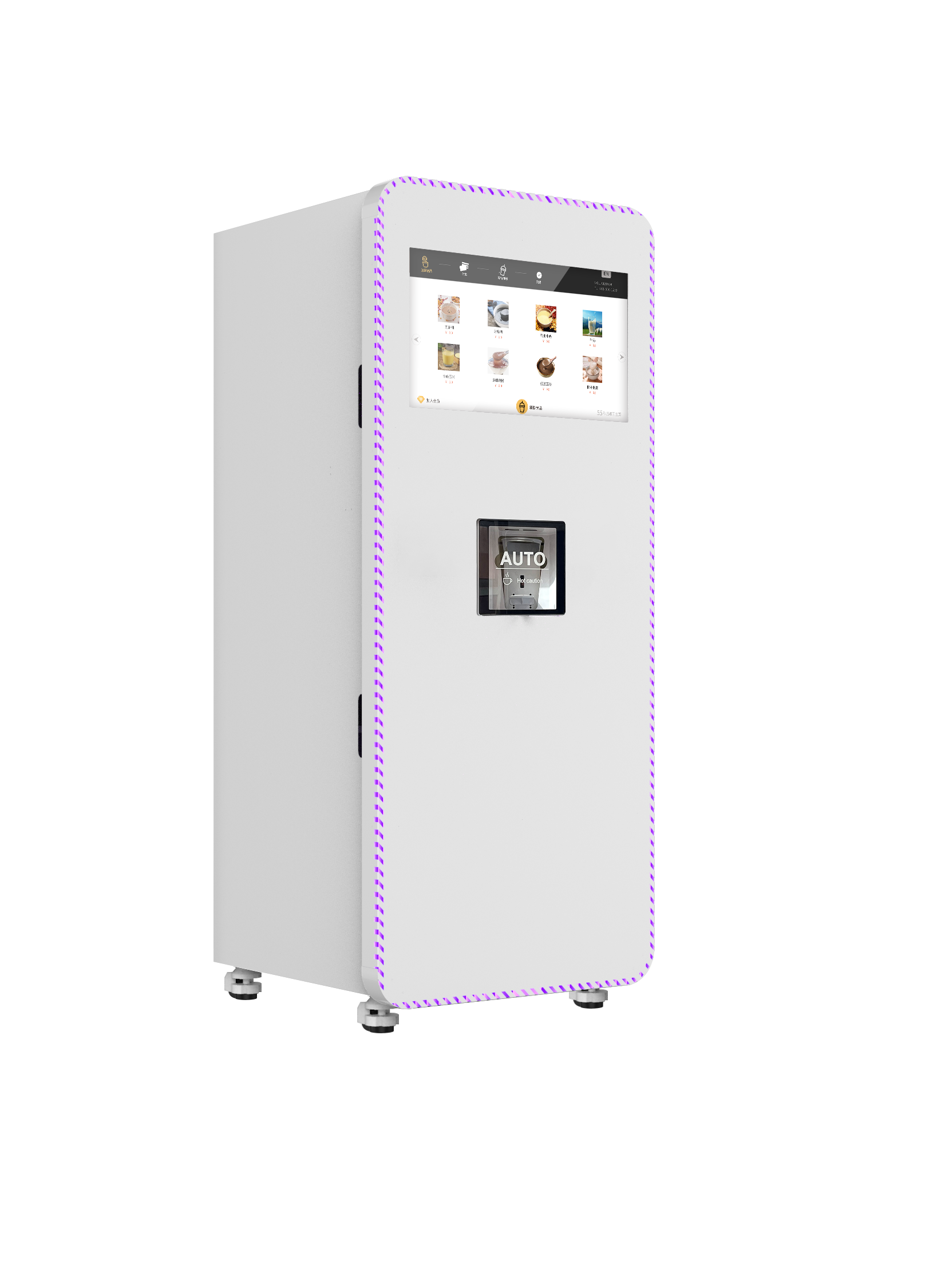 شاشة تعمل باللمس: 18.5 بوصة للإعلانات واختيار النكهات.